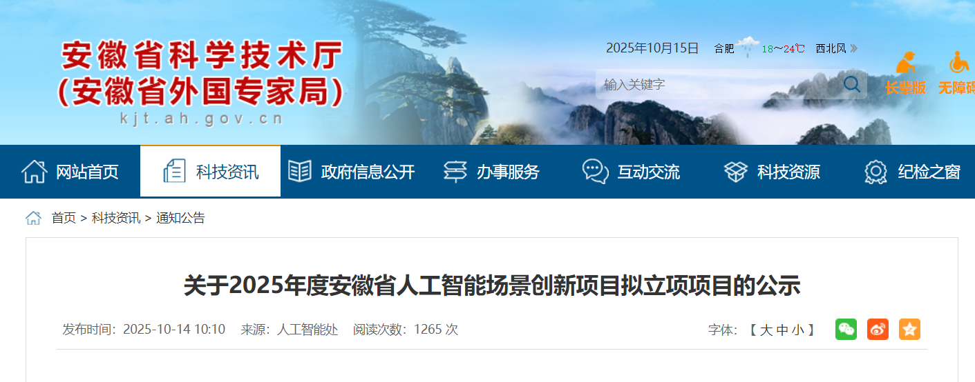 根据《关于开展〈打造通用人工智能产业创新和应用高地若干政策(2.0版)〉兑现申报的通知》《关于发布2025年度安徽省人工智能场景创新项目榜单的通知》,多模态AI驱动的中药全产业链数智化关键技术及数智化服务平台研发等18个2025年度安徽省人工智能场景创新项目榜单,已经项目归口管理部门会同发榜单位完成揭榜评审,总金额为37298.39万元,现予以公示。