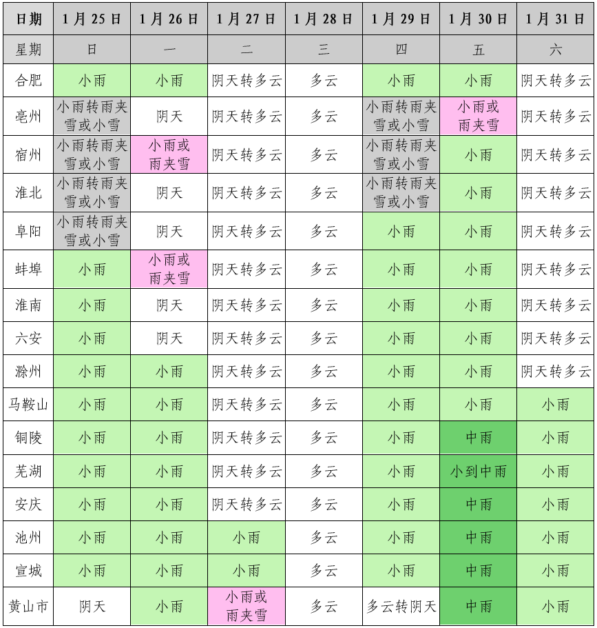 26日:全省阴天。淮河以北东部有雨夹雪,淮河以南大部分地区有小雨。