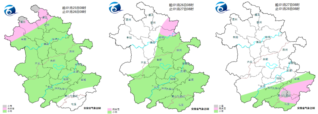 刚刚,安徽省气象台发布最新预报,25-27日我省自北向南有一次降水过程,其中25日夜里淮河以北部分地区有小雨转雨夹雪或小雪,26日淮河以北东部有雨夹雪,27日皖南山区有雨夹雪或小雪。30日前后我省还有一次弱雨雪天气过程。