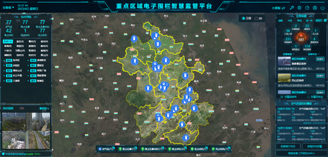 为认真贯彻落实中共中央办公厅 国务院办公厅《关于深化环境监测改革提高环境监测数据质量的意见》精神,防范人为干扰监测行为,全面落实生态环境部关于国控监测站点运维基础保障责任要求,确保国控城市站监测数据真实准确,2022年,安徽在全省16个市77个国控城市环境空气质量自动监测站(以下简称国控城市站)周边设置电子围栏,实现国控城市站电子围栏智慧监管全覆盖。