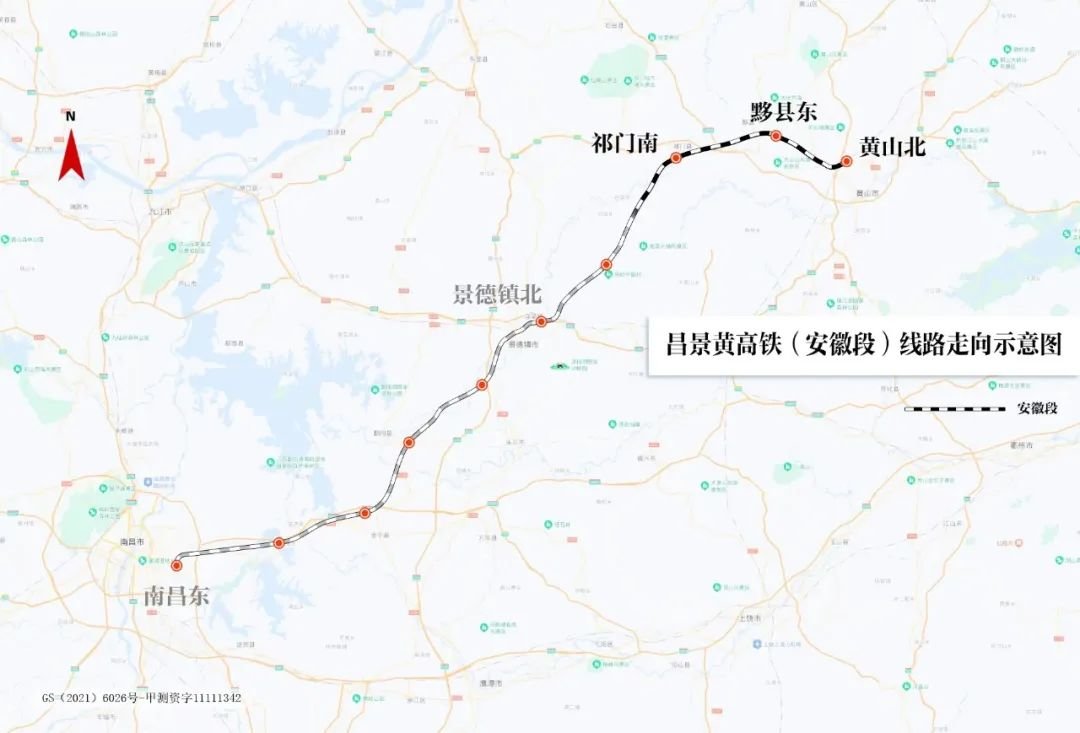 昌景黄高铁(安徽段)长约90公里,设祁门南、黟县东、黄山北三座车站,新建祁门南、黟县东两座车站。作为安徽省的“南大门”,祁门县以盛产红茶被人熟知。新建祁门南站是祁门县第一座高铁站。